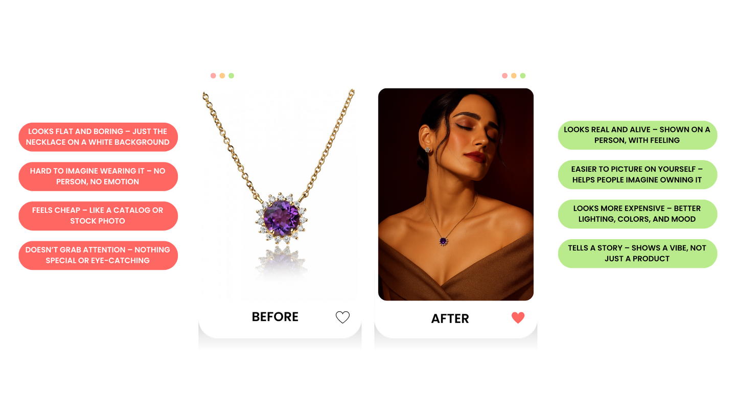 From basic product shots to bold visuals that feel high-end. Hereโs how we transform our clients' images.